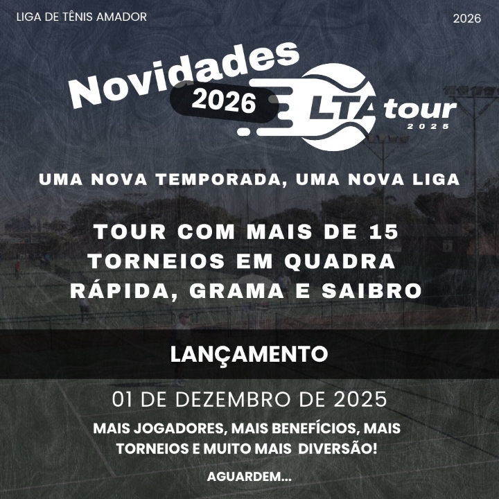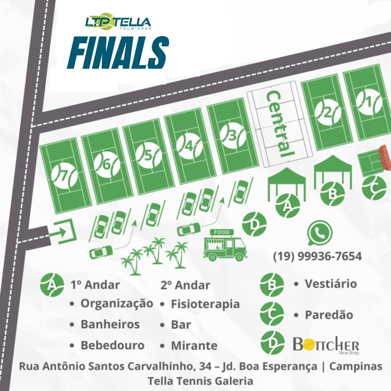 Estamos há duas semanas do início do Finals LTP TELLA TOUR 2025. No total foram oito etapas ao longo deste ano, sendo quatro etapas disputadas no Complexo Esportivo Itapoan em Paulínia e mais quatro etapas disputadas na Academia Tella Tennis. Muito trabalho até aqui foi realizado pelos organizadores da LTP (André Pedroso e Tiago Sá) e pela Academia Tella Tennis (Claudia, João e Luciana Tella). Eles prometem novidades para 2026. Se esta temporada está excelente, a próxima ficará ainda melhor. As novidades serão aqui contadas muito em breve. Aguardem!