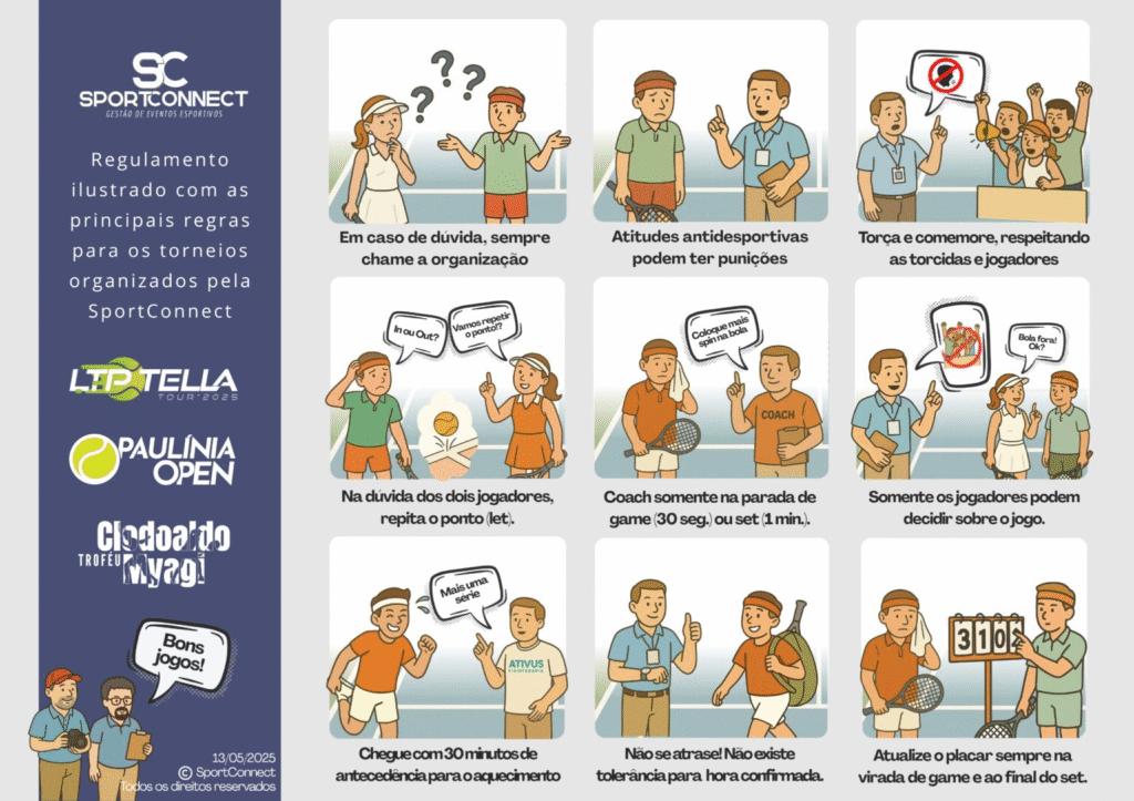 O regulamento do torneio segue os mesmos princípios aplicados em todos os torneios realizados pela Sport Connect, com alguns ajustes, e pode ser consultado neste link acessando aqui.