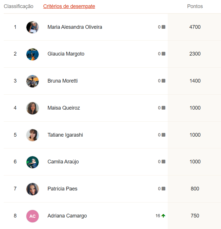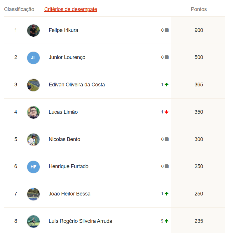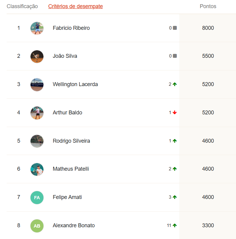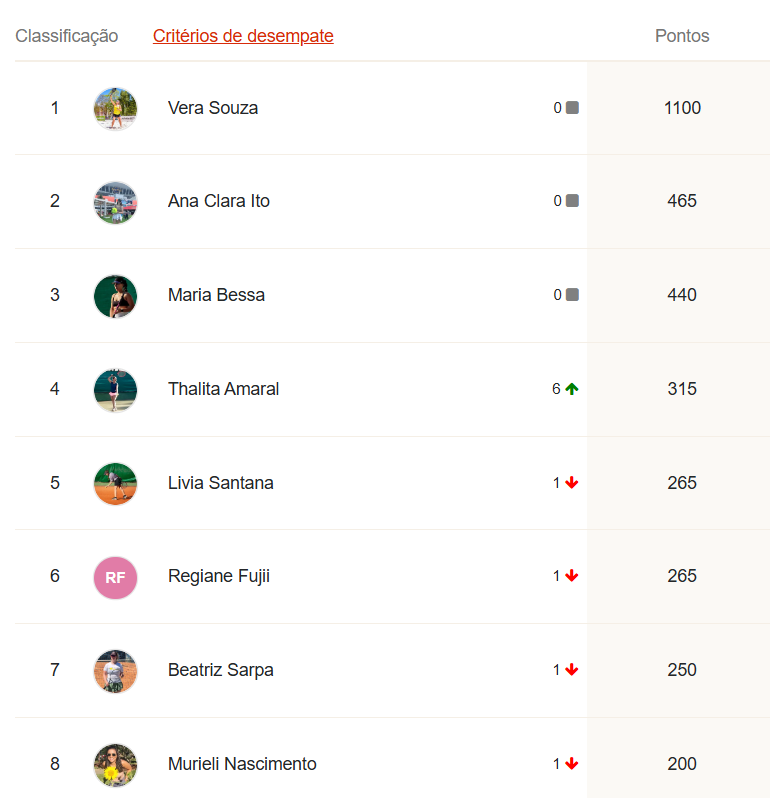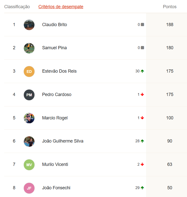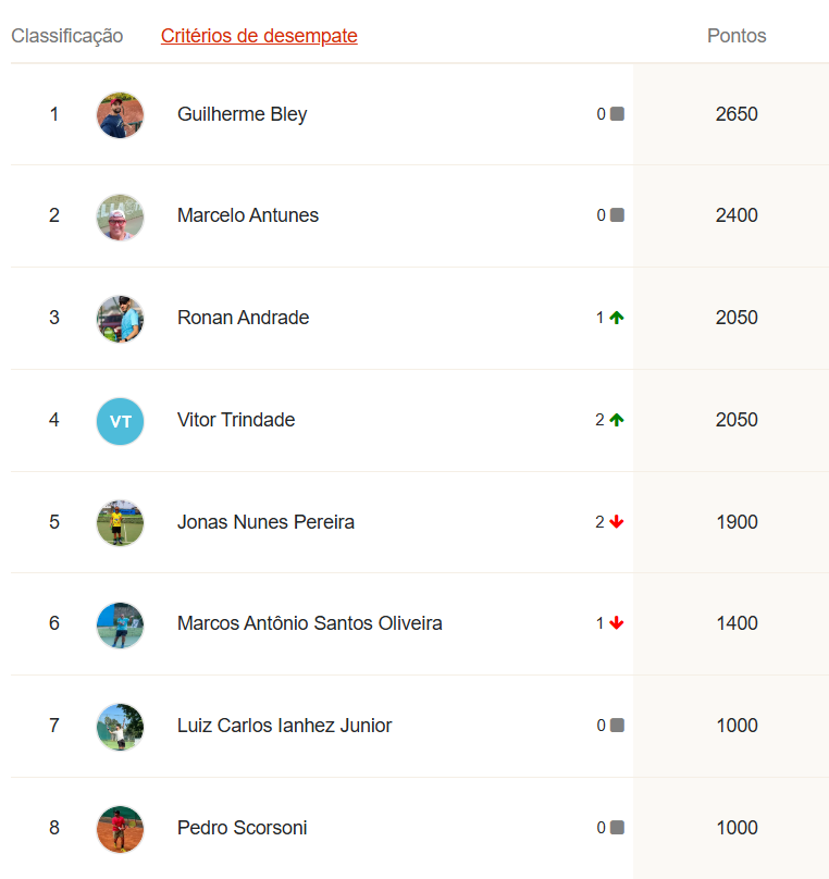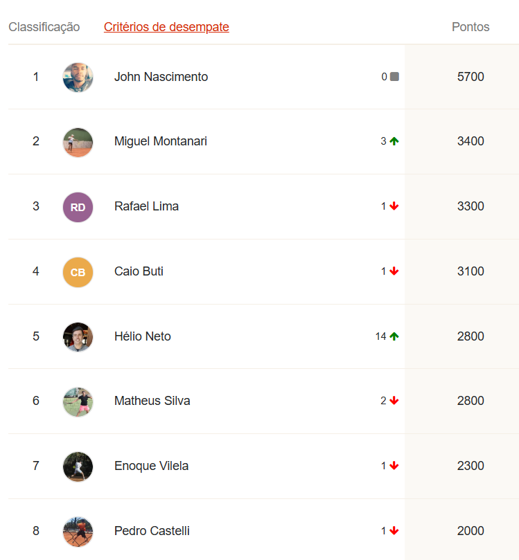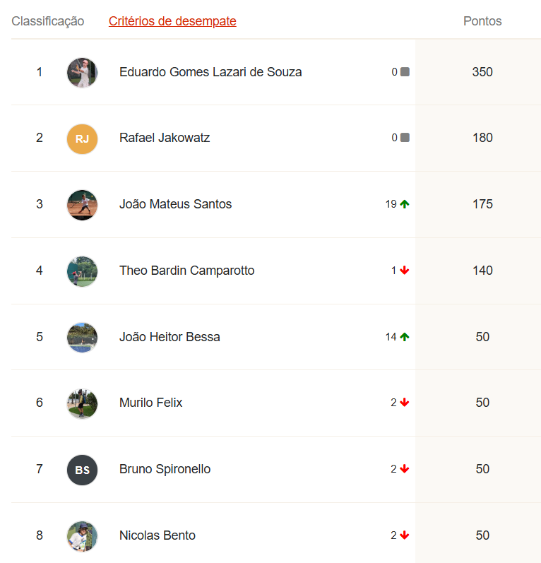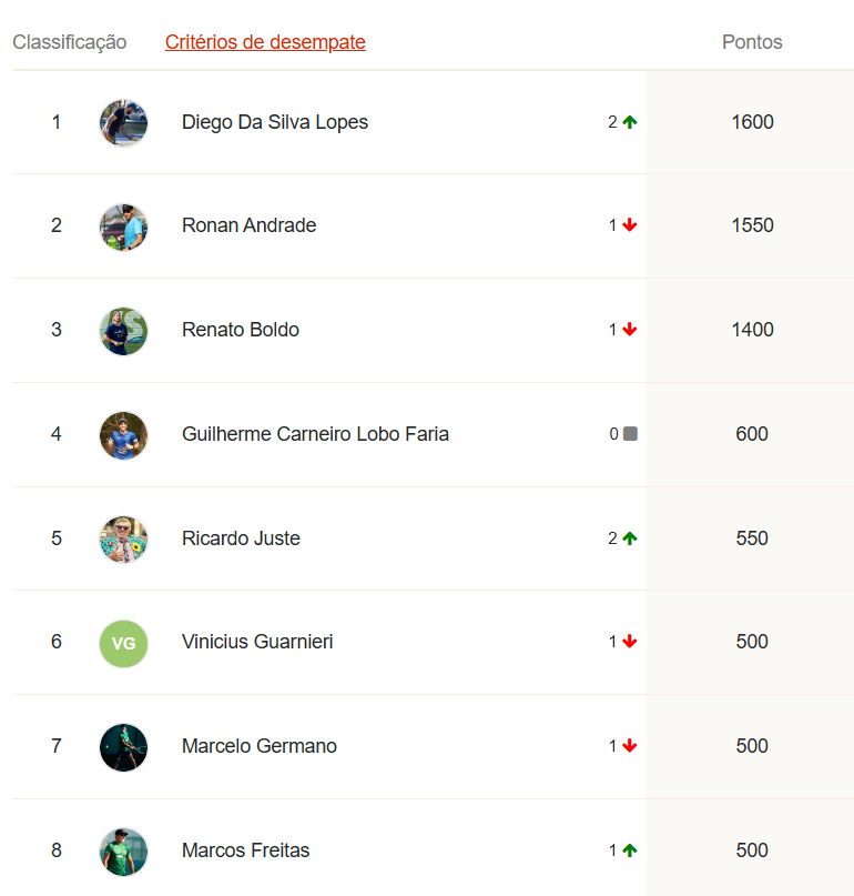 Ao final desta etapa, o G8 do Ranking da temporada LTP TELLA TOUR 2025 está assim: